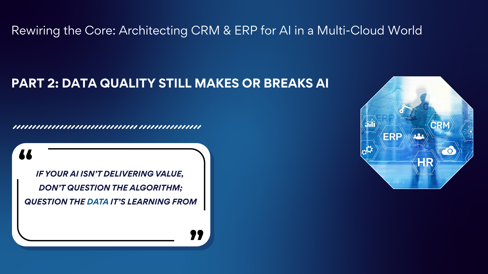 In Part 1, we talked about the foundational mismatch between traditional ERP/CRM systems and the demands of AI. While these platforms excel at transactions, they were not built to provide intelligence or predictive insights.